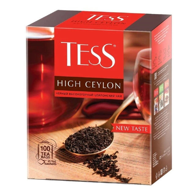 Чай Tess High Ceylon черный 100 пакетиков - изысканная гамма чая открывает все лучшие качества, присущие сортам, выращенным на высокогорных плантациях острова Цейлон, - сбалансированность и полноту вкуса, янтарный цвет настоя, чудесный свежий аромат с деликатными цветочными нотами.