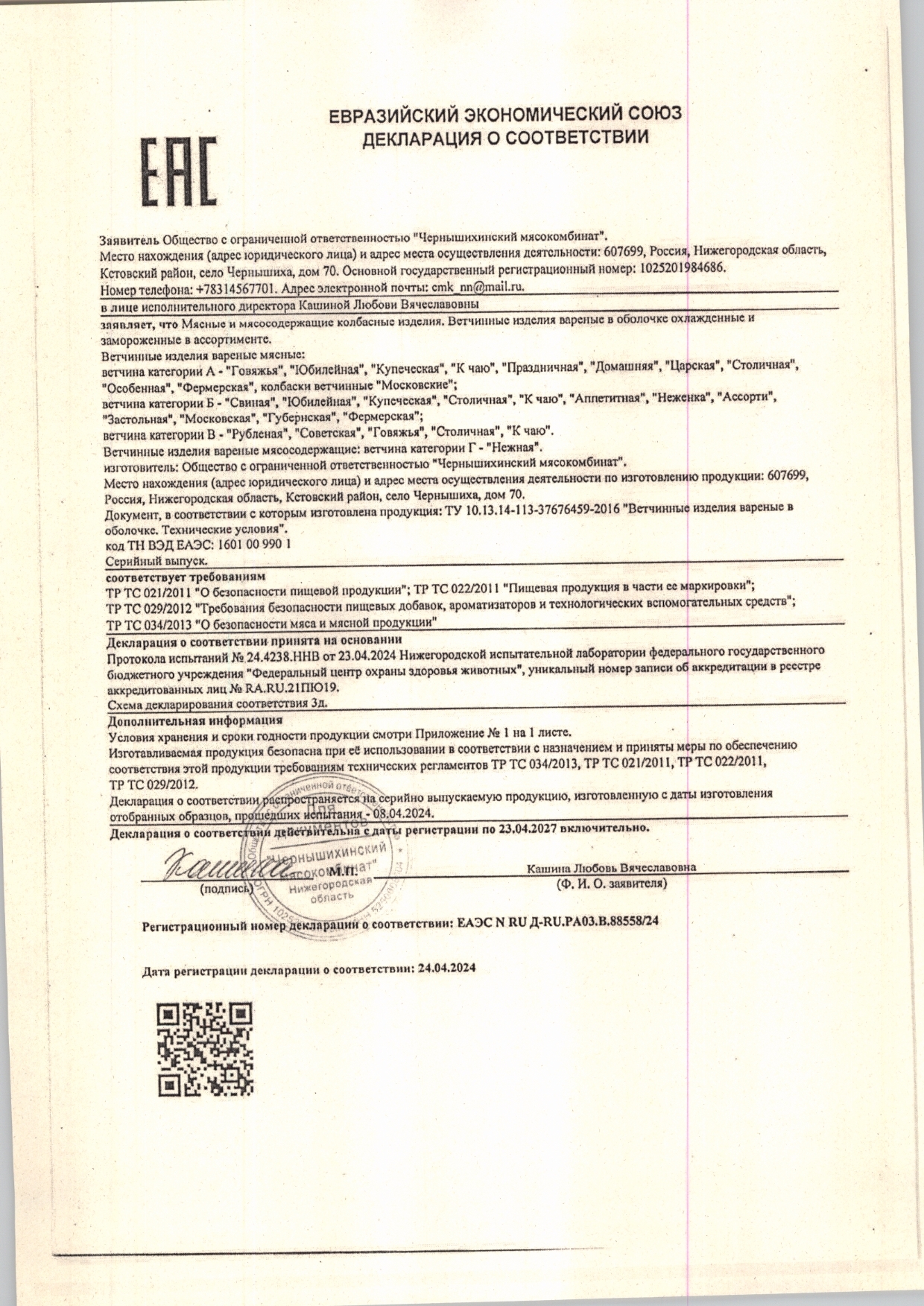 Ветчина аппетитная «Чернышихинский МК» ~ 1,9 кг